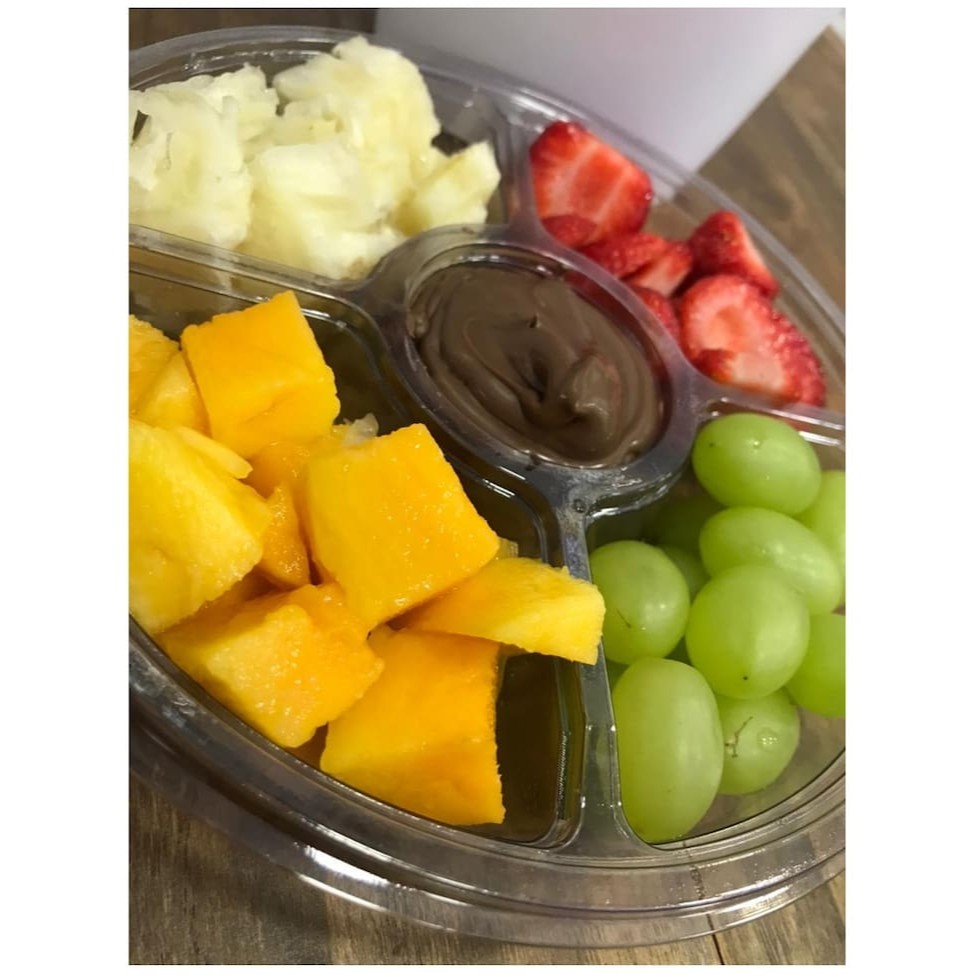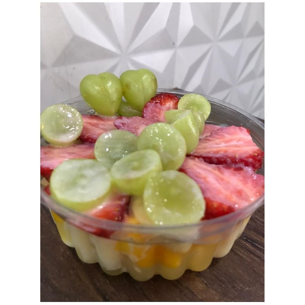 Acompanha: abacaxi, banana, manga, uva e leite condensado.