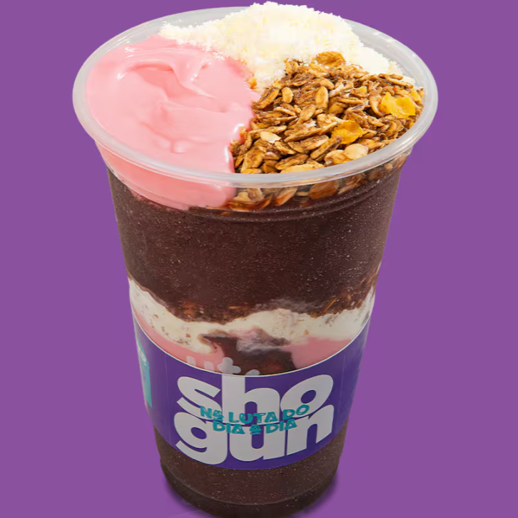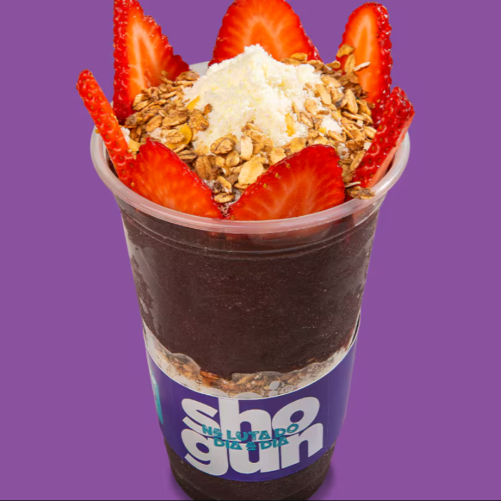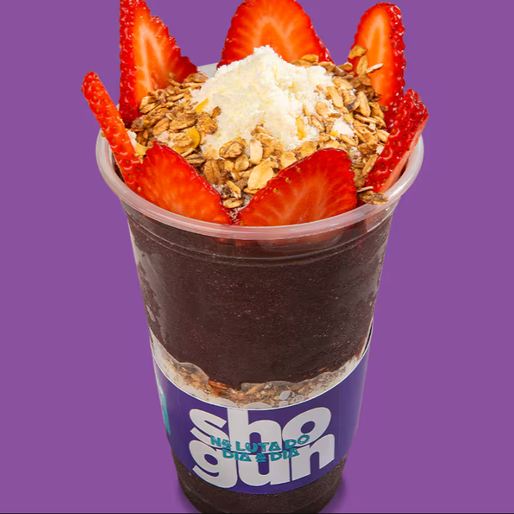 Preparado com nosso irresistível creme de morango, leite Ninho e granola. A força do Shogun em cada colherada!