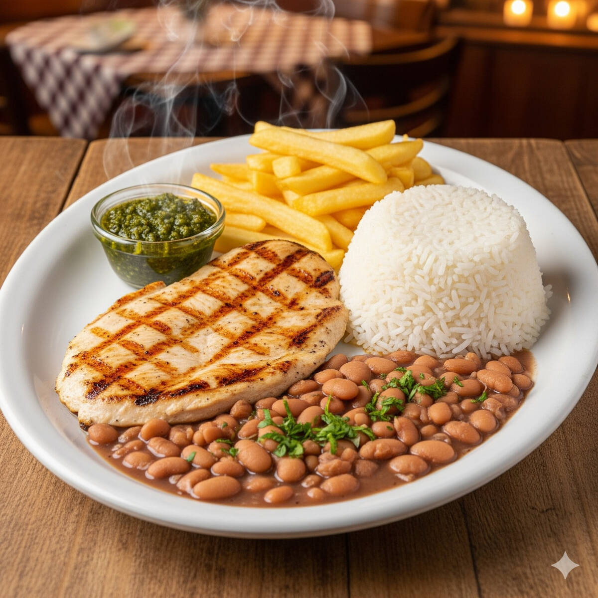 Filé De Frango Com Arroz, Feijão, E Batata Frita