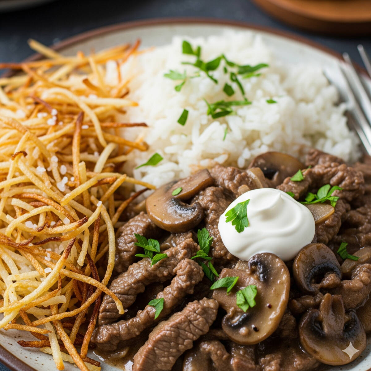 Estrogonofe De Carne Com Arroz E Batata Palha