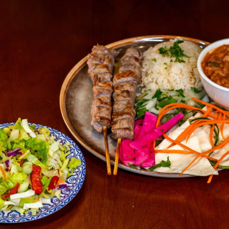 Pao Arabe maravilhosa de carne e frango emolho de alho ,alface tomate ,cebola salsa ,salada de repolho, batata frita e pasta de alho