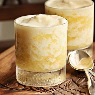 Abacaxi, açúcar, leite condensado, gelo e vodka ou cachaça.