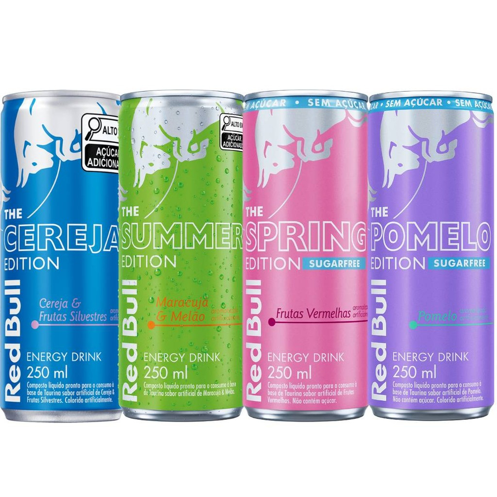 Redbull (tradicional, Melancia, Frutas Vermelhas, Frutas Tropicais, Maracujá E Melão, Pomelo, Blueberry E Baunilha)