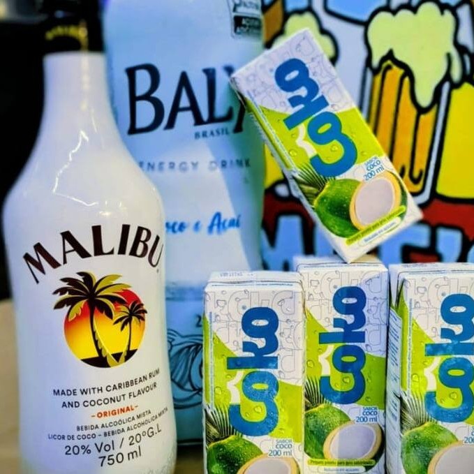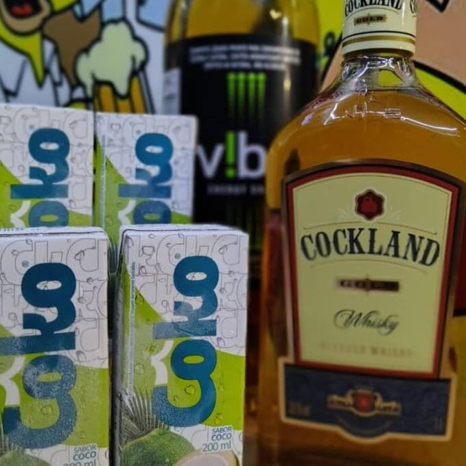 Garrafa cockland 1l +4 Gelos de coco e uma garrafa de energético Vibe Obs. Caso queira Gelo de outro sabor encaminhar msg no chat.