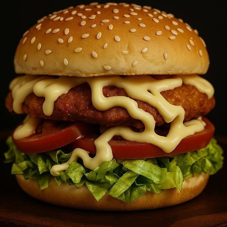 Pão ( 4 opções ), Hambúrguer 160g, Molho da Casa1 (maionese temperada) e Queijo Prato