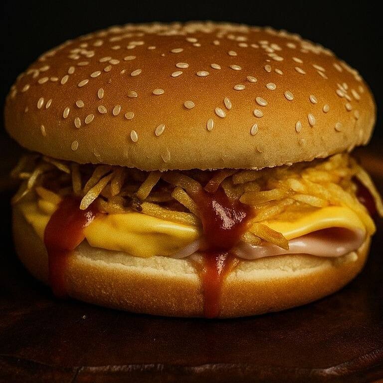 Pão com gergelim, hambúrguer, queijo prato,presunto, maionese, ketchup #monizhamburgueria #botecomoniz #lanche