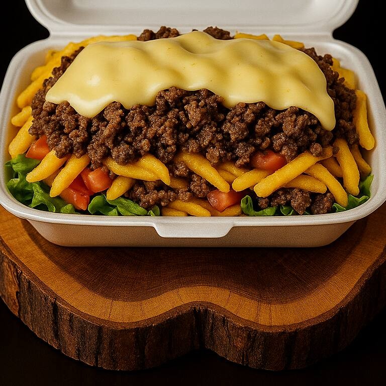 Batata Tradicional 280g , Smash De Carne Bovina 80g, Queijo Prato Ou Queijo Mussarela, Alface, Tomate, Ketchup E Molho Especial