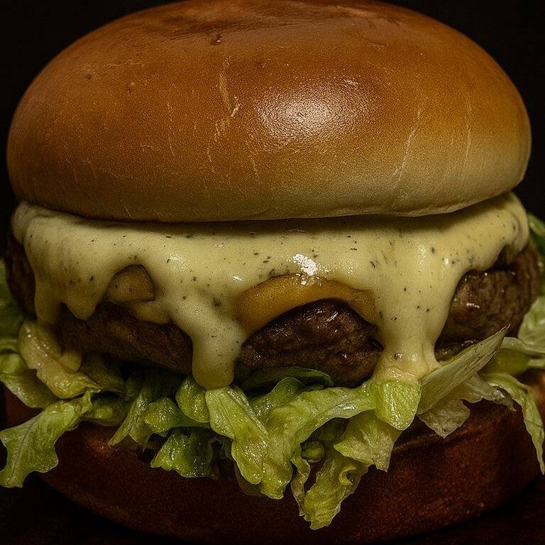 Pão ( 3 opções ), 1 hambúrguer de 160g, Queijo prato, alface, tomate, Molho da Casa 2(molho verde)