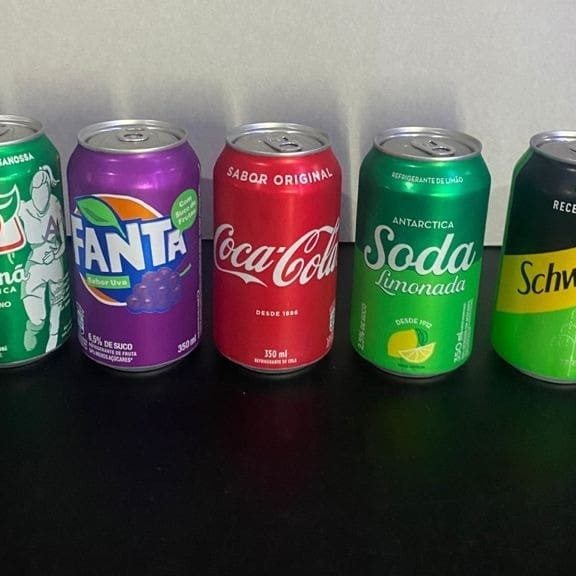 Refrigerantes em lata 350ml ( guarana, Fanta uva, Coca-Cola,Soda limao e Schweppes