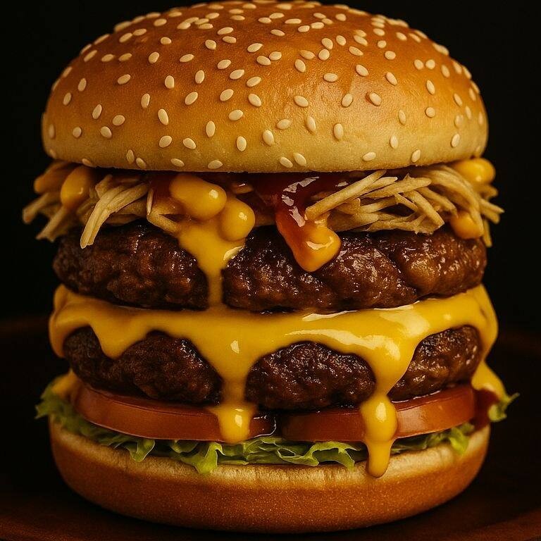 Pão com gergelim, Duplo hambúrguer, Duplo cheddar Fatiado, molho da casa,molho especial,milho , batata palha ,tomate, alface .. #monizhamburgueria #botecomoniz #fikamonstro #lanche