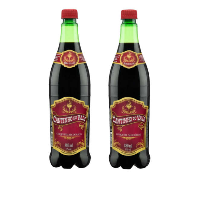 2 garrafas de Cantinho do Vale de 880ml cada. Apresentamos o Coquetel Composto Cantinho do Vale, uma combinação irresistível de vinho tinto suave, fermentado de maçã e suco de uva. Com sua coloração vermelho claro e aroma envolvente de suco de uva, essa bebida conquistou paladares de norte a sul do Brasil. Versátil e saboroso, o Cantinho do Vale é perfeito para qualquer estação: sirva gelado para refrescar seu verão ou quente para aquecer seu inverno. Experimente essa deliciosa mistura e deixe-se encantar! Graduação alcoólica 10,1%. Coquetel fabricado no Brasil.