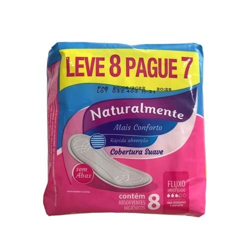 Absorvente Gel Sem Abas Naturalmente Leve 8 Un Pague 7 Un