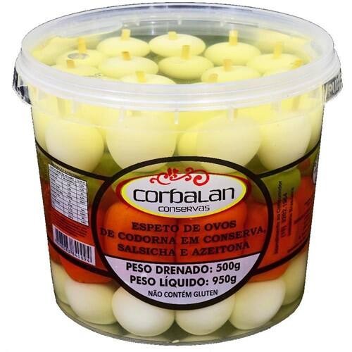 Espeto Misto De Ovos De Codorna, Salsicha E Azeitona Em Conserva Corbalan 1300kg
