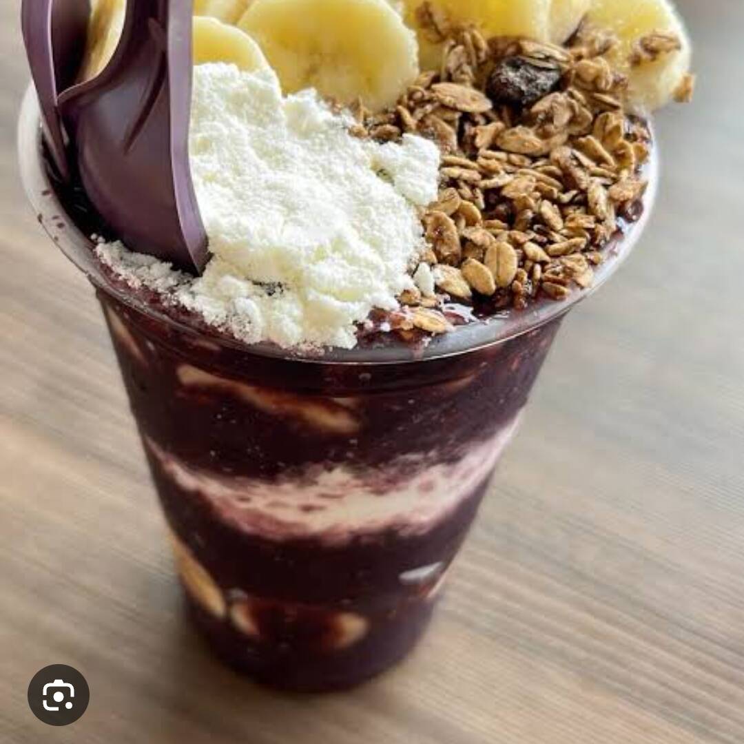Açaí com leite condensado,granola,Confete e banana