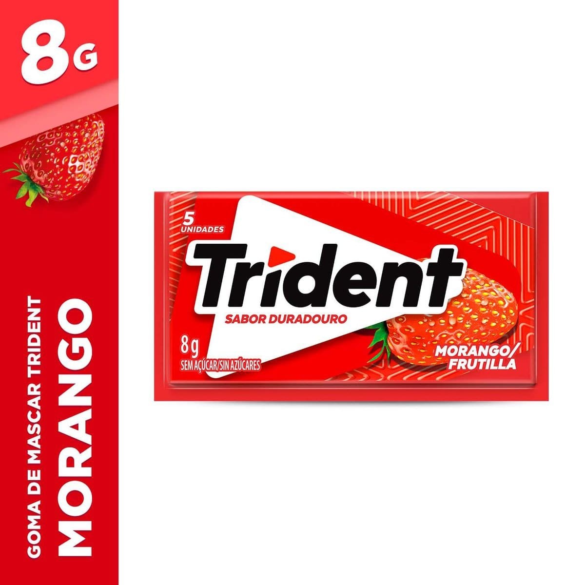 Chiclete Trident Morango Sem Açúcar 8g - Embalagem Com 5 Unid.