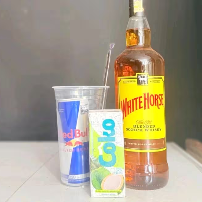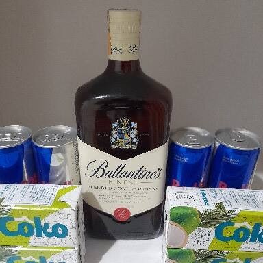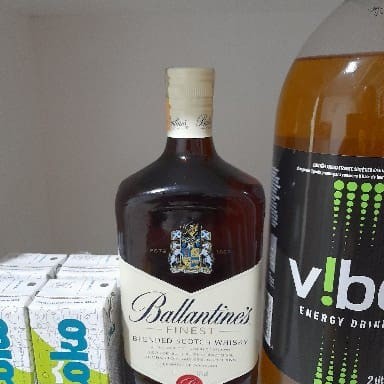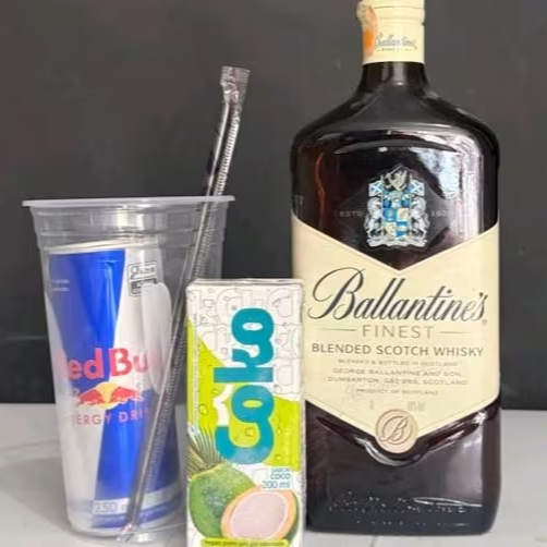 1 whisky Ballantines + 4 gelo de coco + 1 Energético v!be 2 litros produto para maioresde18 anos