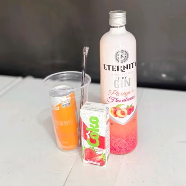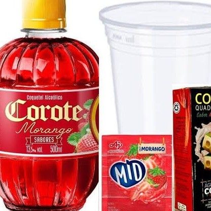 1-Duelo de morango 1-Gelo de morango(embalagem de 200ml congelado) 1-Suco Mid morango 1-Copo Descartável