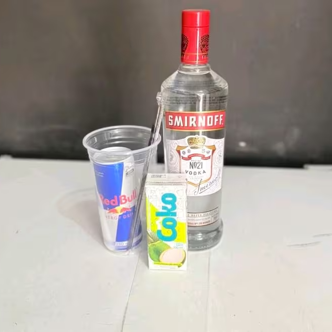 1 Wisky Jack Daniels 4 Gelo de Coco 4 Redbull