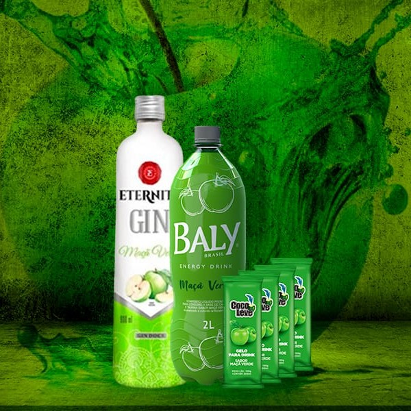 Acompanha: 1 Garrafa Gin Eternity Maçã Verde + Energético maçã verde 2lts + 4 gelos (escolher sabor nas observações) e frutas congeladas. Acompanha 4 copos e canudos (Na falta do gin de sabor será enviado o tradicional/sem sabor) Kit Frutas enviado conforme a disponibidade.