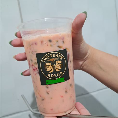 TODOS DESTILADOS TESTADOS CONTRA O METANOL! Drink no Copo de 700ml. com morango fresco, maracujá fresco, leite condensado, limão, 2 doses de Velho Barreiro, (utilizamos 100ML para que não fique forte e nem fraca, caso goste da bebida mais forte aconselhamos dar uma turbinada na opção de complementos) e gelo. Todos os copos são Selados para evitar vazamentos Uma explosão de sabores tropicais em cada gole! O azedinho refrescante do maracujá se mistura à doçura natural do morango, criando a combinação perfeita para dias quentes ou noites animadas. Feita com cachaça de qualidade, frutas frescas e gelo especial, essa caipirinha é o equilíbrio ideal entre refrescância, sabor e intensidade.