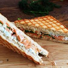 2 fatias de pão integral light, salmão defumado, cream cheese, rúcula e azeite