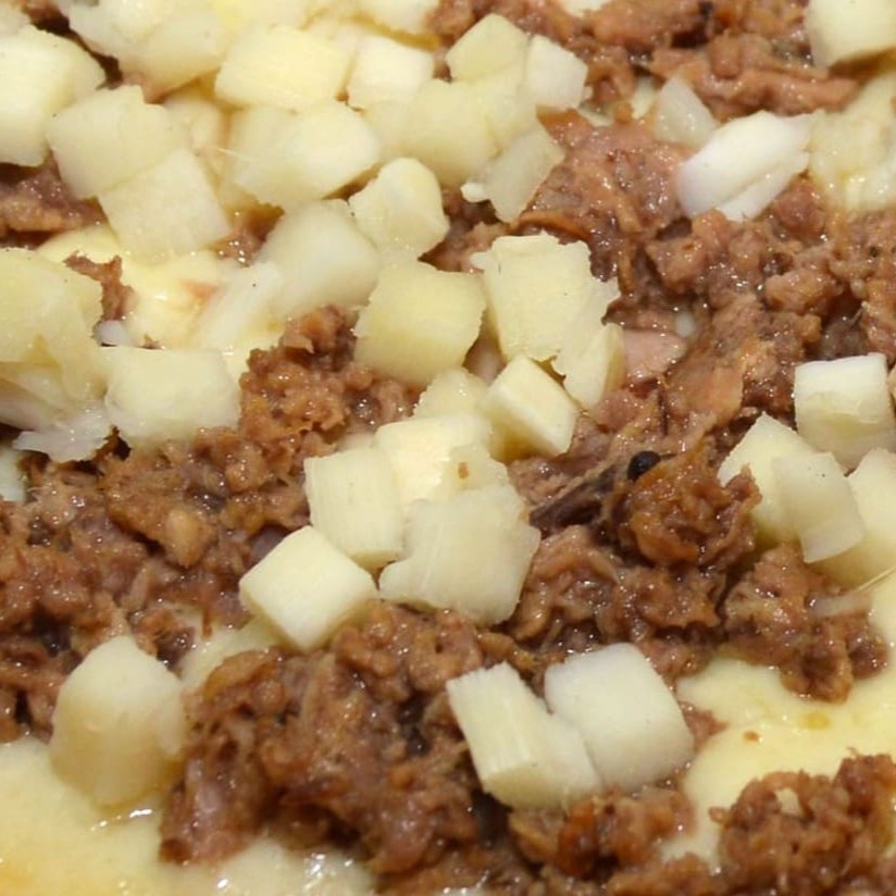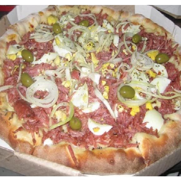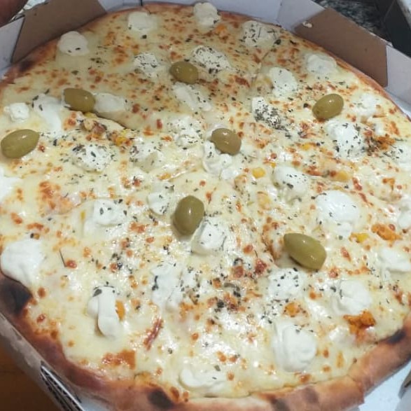 Atum ralado, cebola, palmito, ervilha e mussarela