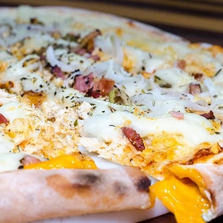 Peito de peru, cebola, ervilha, palmito e mussarela