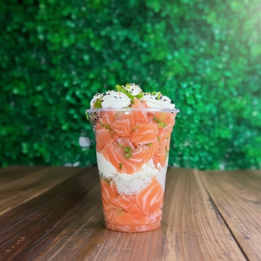 Cupmaki salmão batido 300 ml - Salmão - Arroz - creme tis - cebolinha