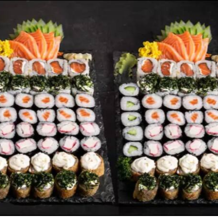 O 'Combo Sushi 90 peças' é uma explosão de sabores que promete satisfazer todos os seus desejos de sushi. Esta oferta irresistível inclui 30 peças variadas de Hot Rolls, 10 deliciosos Hot Rolls de banana, e 35 apetitosos Hossomakis - 5 de salmão fresco, 10 de pepino crocante e 10 de kani suculento. O combo também oferece 15 peças de Niguiris e Uramakis, com 5 Niguiris Skin, 5 Uramakis Skin, 5 Uramakis Filadélfia, 5 Uramakis de salmão fresco e 5 Uramakis Califórnia. Acompanha ainda 3 pares de hashis, 4 sachês de shoyu e 4 sachês de tarê, para realçar ainda mais os deliciosos sabores deste combo. Lembrando que não fazemos alterações neste combo. Aproveite, pois é uma promoção por tempo limitado! Serve 4 pessoas