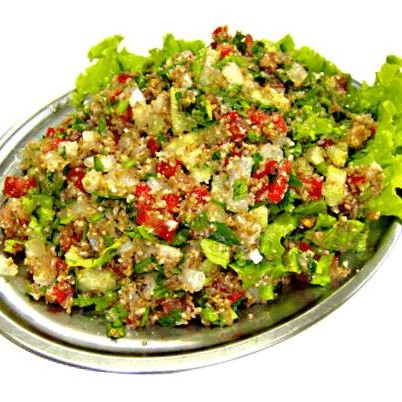 Salada araabe feita de salsinha tomate cebola e trigo