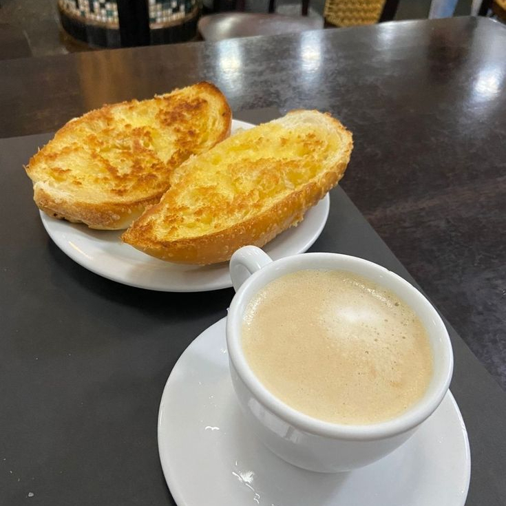 Café com leite+ pão na chapa