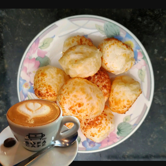 escolha sua bebida + 80g de pão de queijo aprox. 6 un.