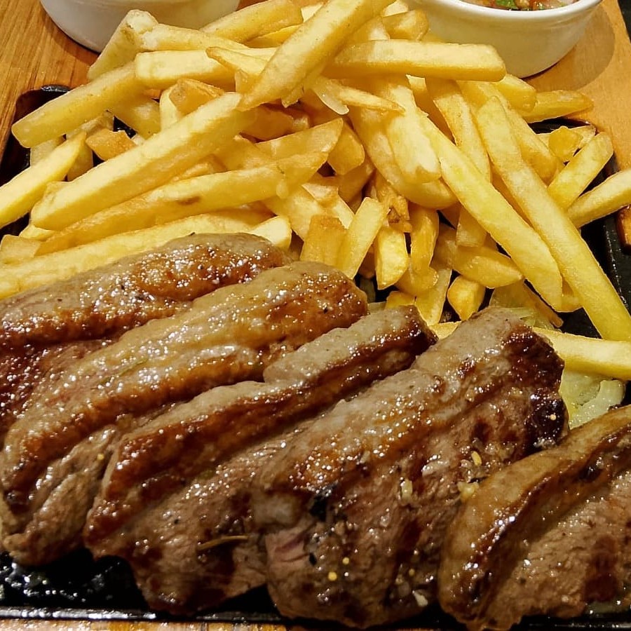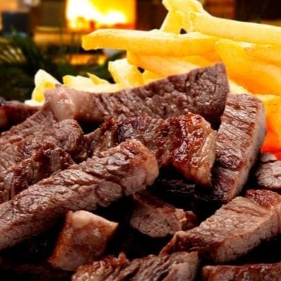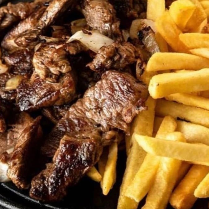 Servem duas pessoas , acompanha Batata frita .vinagrete e farofa