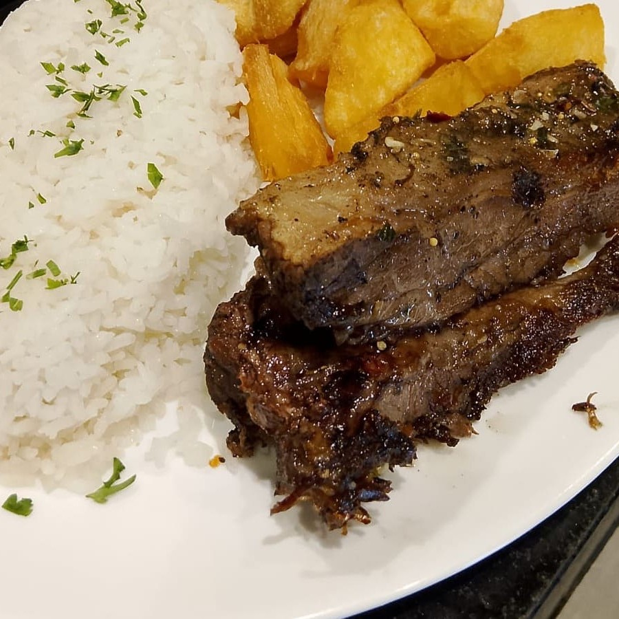 Servem duas pessoas, acompanha , batata, vinagrete e farofa