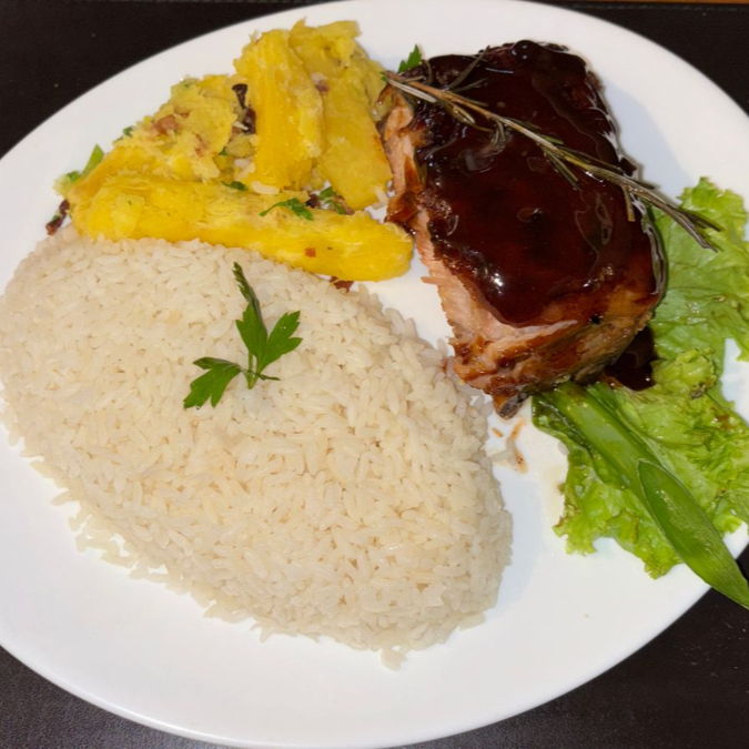 Servem duas pessoas , acompanha batata, vinagrete e farofa
