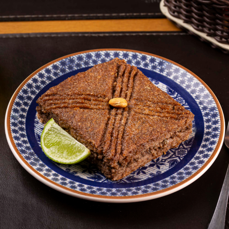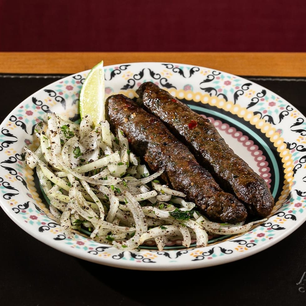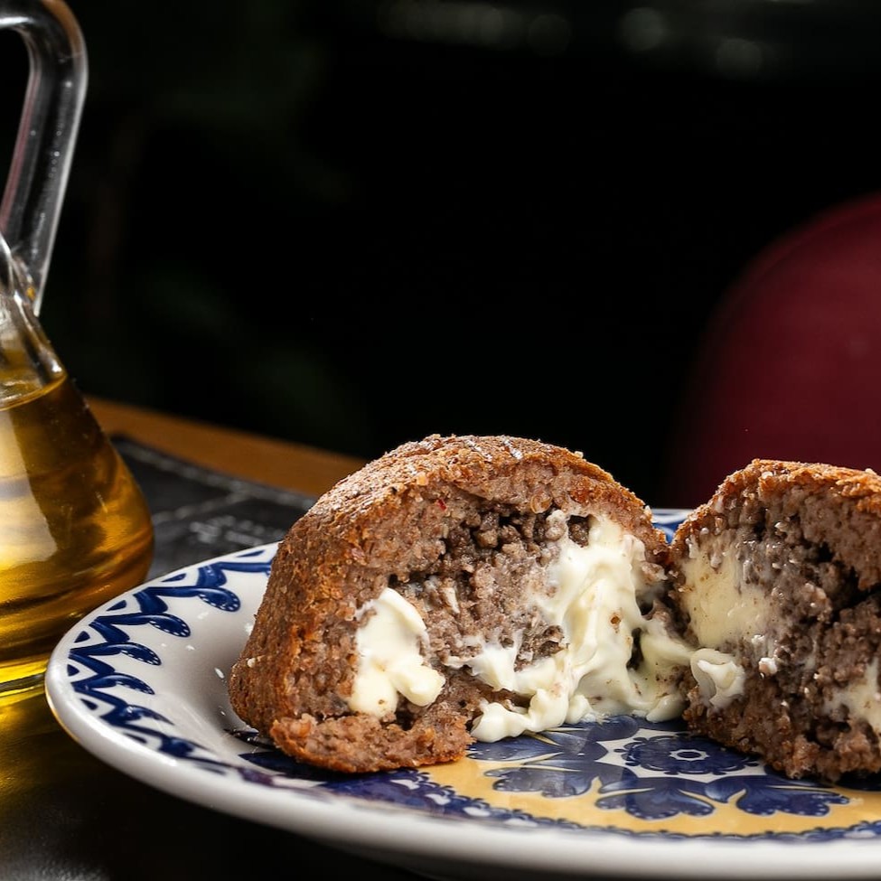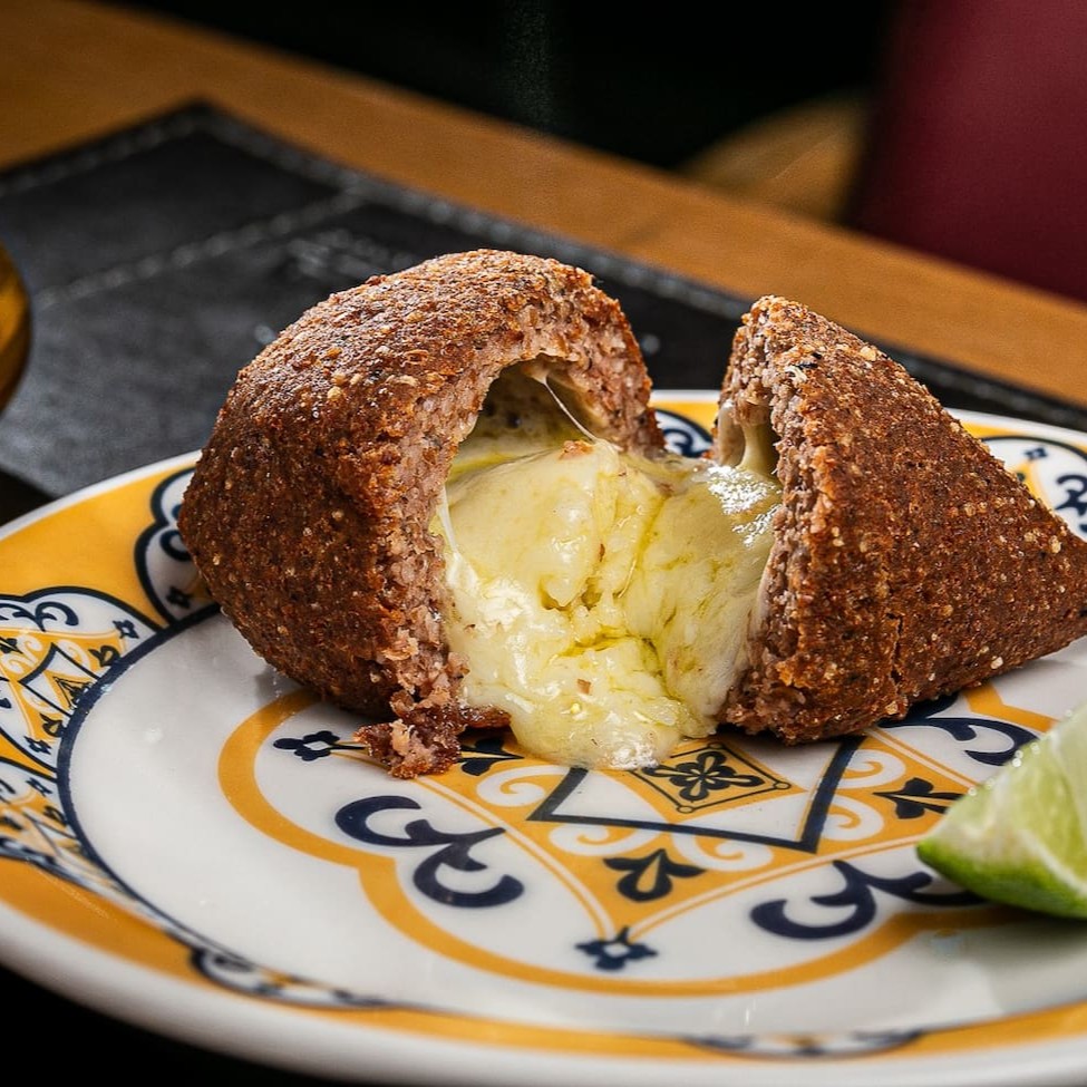 Kibe Cru (Cebolo e hortelã), coalhada seca e tabule.