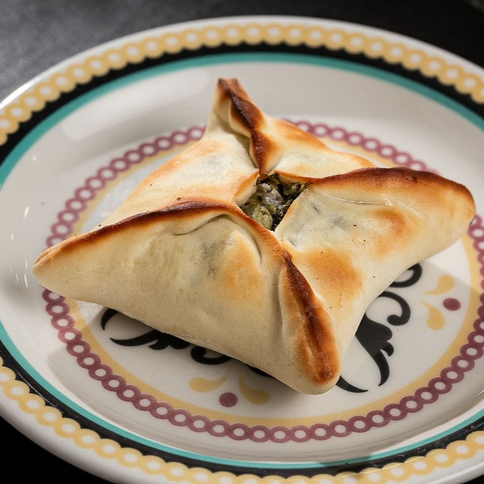 Esfiha recheada com Escarola, cebola, tomate e temperos libaneses