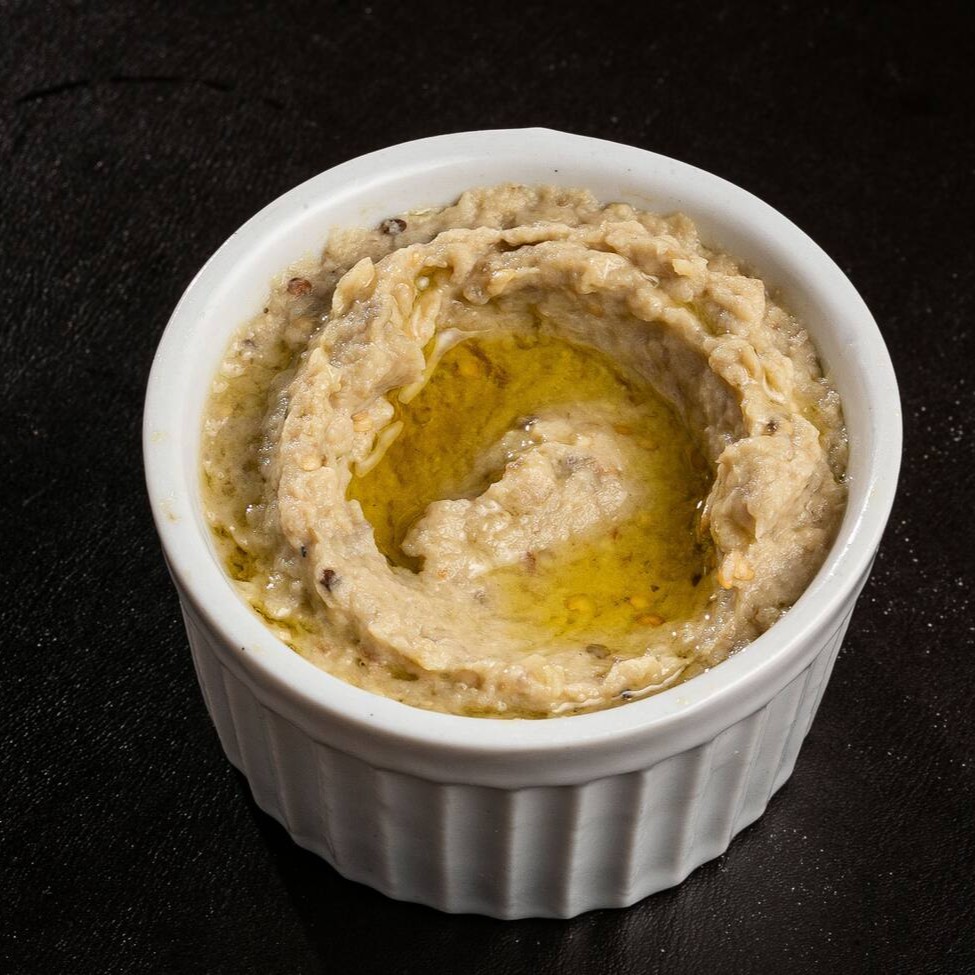 Pasta de beringela, temperada com sal, limão, alho e tahine libanês