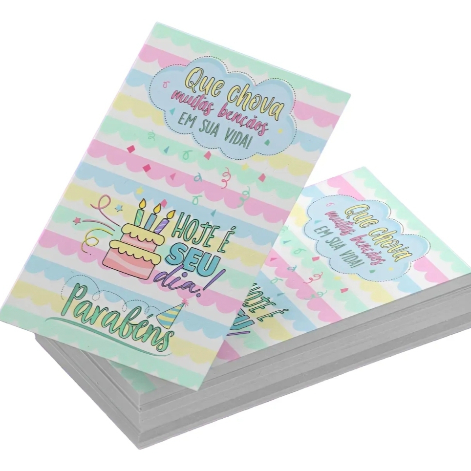 Feliz aniversário Instruções: -> Adicione pequena mensagem para ser escrito no verso. Até 50 caracteres. -> Informe o nome de quem irá receber o presente. -> Informe o código de entrega do para a pessoa ou motoboy via chat