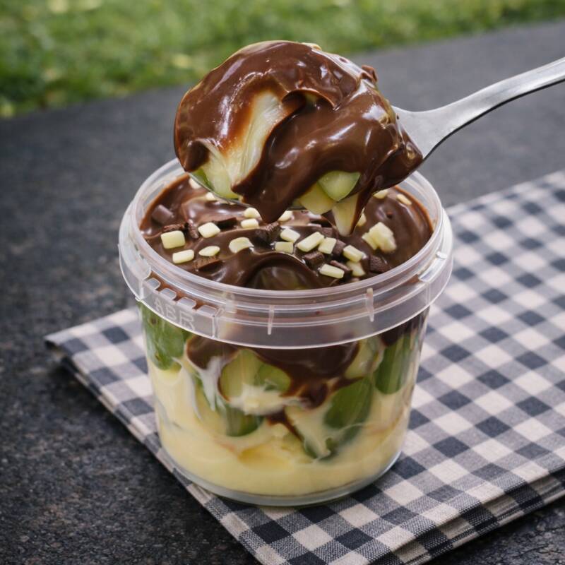 Brigadeiro branco cremoso, uvas fresquinhas e ganache de chocolate em perfeita harmonia. Leve, delicado e cheio de sabor, é aquele doce que conquista na primeira colherada e deixa vontade de repetir Pote individual de 200g