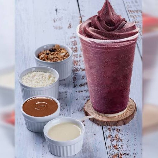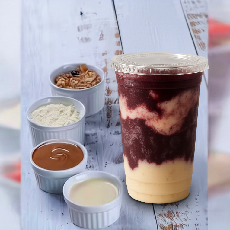 Copo com 500 ml de açaí + cupuaçu cremoso e sem cristais de gelo. Adicione acompanhamentos e turbine seu copo. Obs: os acompanhamentos serão enviados separados em potes de 30 ml