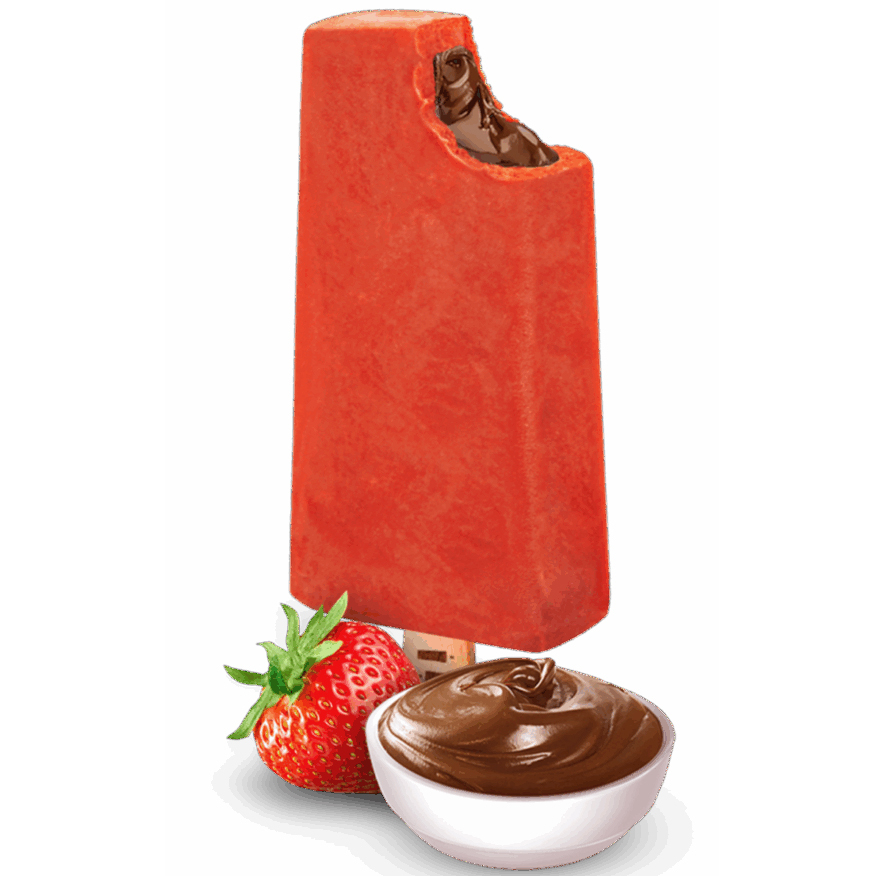 Paleta mexicana de 120g sabor morango com recheio de creme de avelã