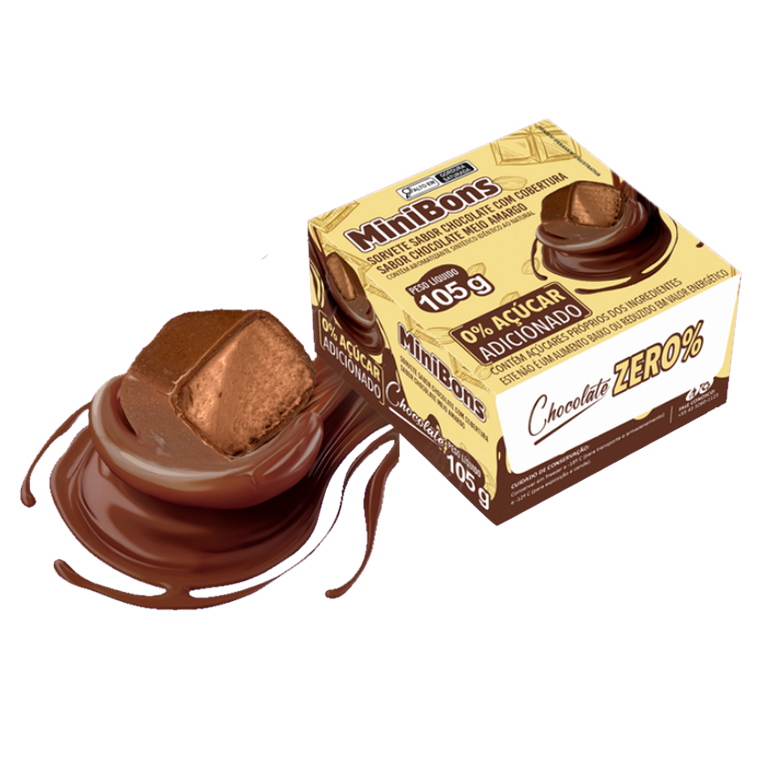 Picolé ao leite sabor chocolate. 0% adição de açúcar. Contém açúcares próprios dos ingredientes.