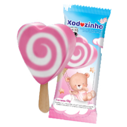 Sorvete no formato de coração riscadinho sabor morango com creme sem cobertura