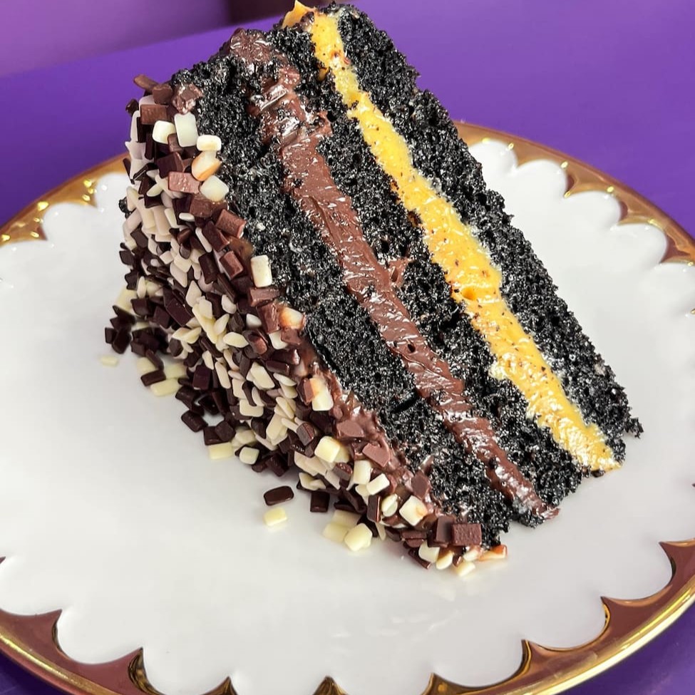 Nosso Amor Intenso é feito com massa de chocolate preparada com cacau black, trazendo sabor profundo e intenso. O recheio combina uma camada cremosa de brigadeiro meio amargo com outra de brigadeiro de maracujá, equilibrando o amargor do chocolate com o toque cítrico da fruta. Finalizado com granulado de chocolate meio amargo e chocolate branco, que completa a experiência com textura e ainda mais sabor. Peso aproximado: 300g