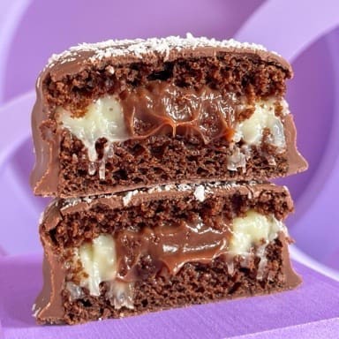 Casquinha crocante banhada com cobertura sabor chocolate, recheada com brigadeiro ao leite cremoso e brigadeiro de coco, formando a combinação perfeita do clássico Prestígio. Peso médio: 90g