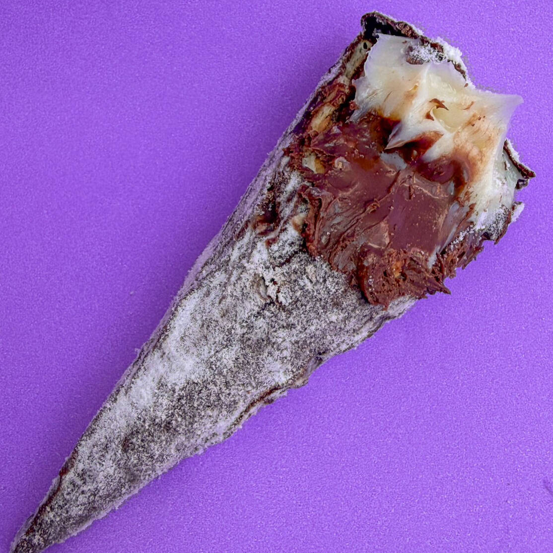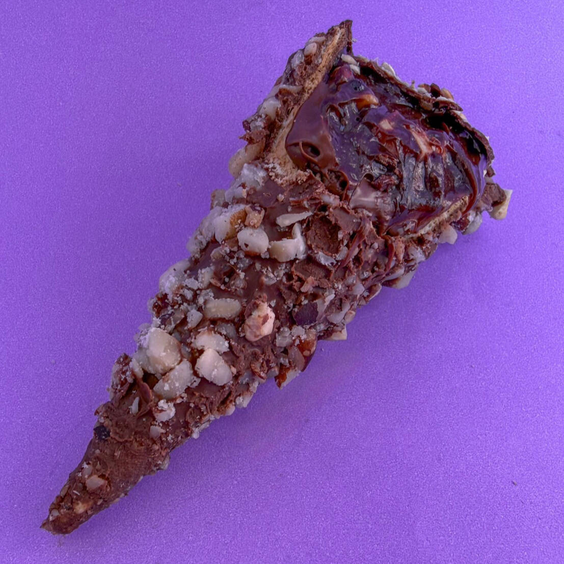 Casquinha crocante coberta com cobertura sabor chocolate, recheada com brigadeiro meio amargo cremoso com amendoim e Nutella pura. A combinação perfeita entre crocância e intensidade de chocolate! Peso médio: 90g