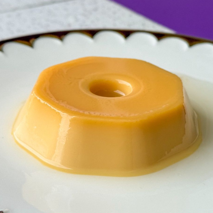 Pudim sem adição de açúcar comum Preparado com leite condensado zero açúcar. A calda é feita com xilitol, por isso tem coloração mais clara que o caramelo tradicional, mantendo a cremosidade e o sabor característicos do pudim. Ingredientes: leite condensado zero açúcar, ovos, leite integral, creme de leite integral e xilitol. Peso aproximado: 100g.