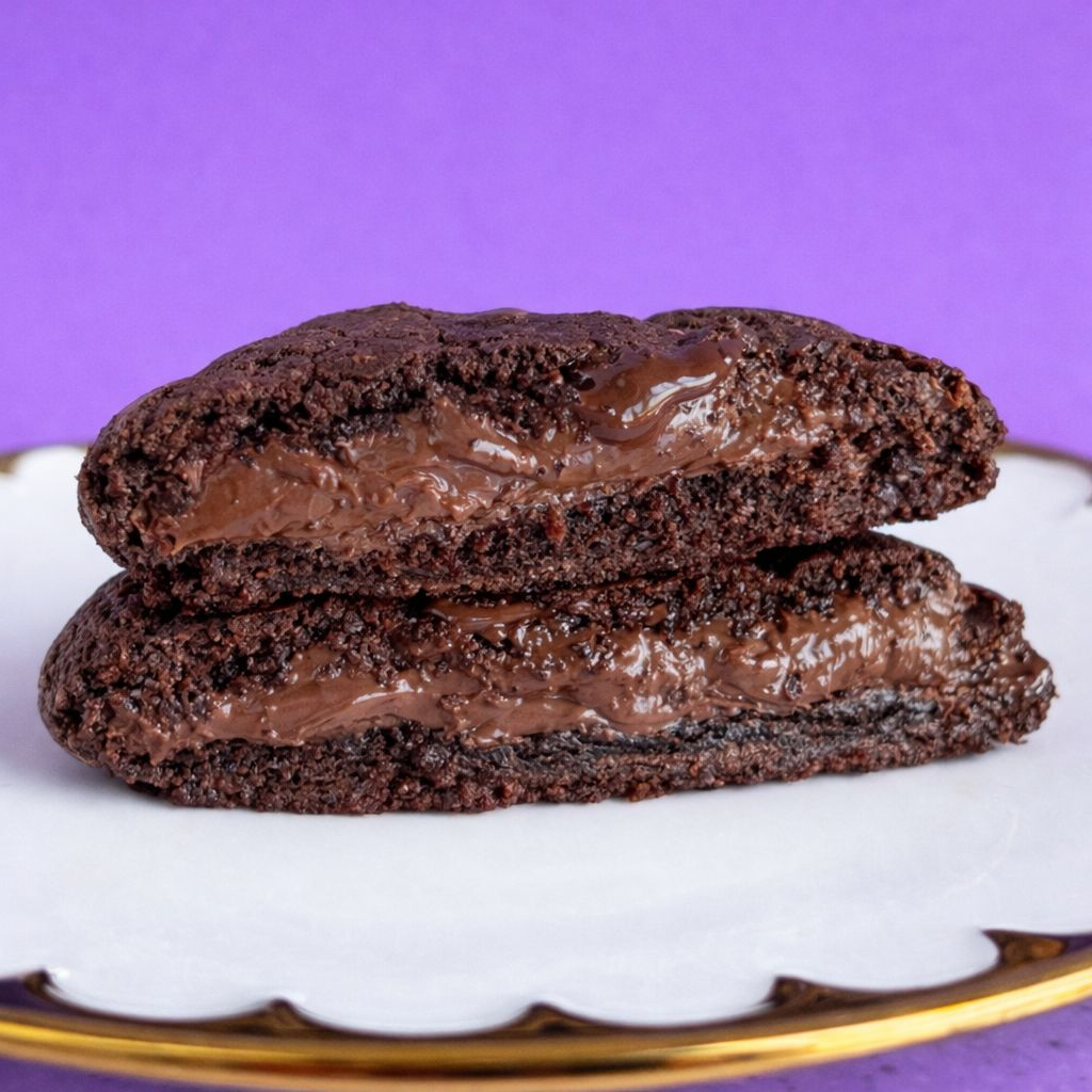 Cookie de chocolate intenso, feito com cacau e gotas de chocolate meio amargo, recheado com Nutella cremosa em abundância. Macio por dentro, marcante no sabor e simplesmente viciante. Aqueça por alguns segundos no microondas para ter uma experiência ainda mais incrível! Peso médio: 100g