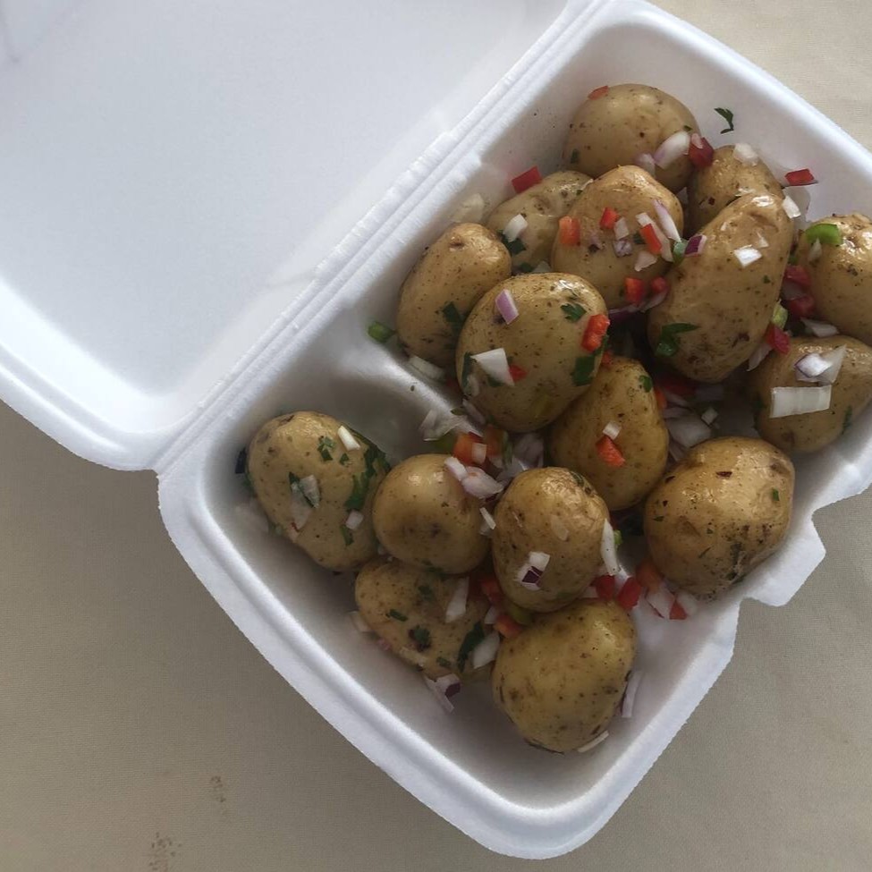 Batata pirulito ao vinagrete.